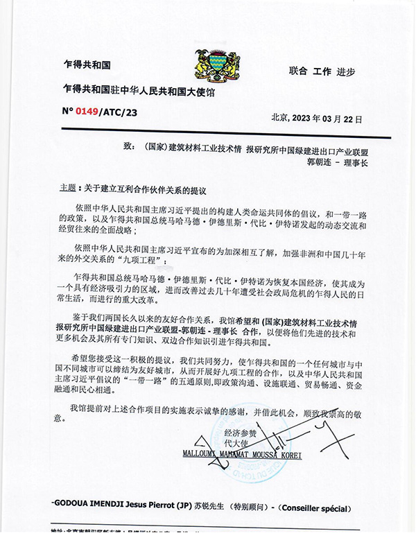 乍得共和國大使館與情報研究所中國綠建郭朝連理事長合作
